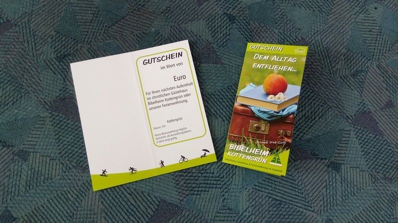Sie suchen ein Geschenk für Ihre Liebsten? Dann haben wir genau das Richtige für Sie. Gutscheine für Ihren Aufenthalt im Christlichen Gästehaus Bibelheim Kottengrün. Sei es zu Freizeiten, Gruppenwochenenden in der Ferienwohnung oder als Einzelreisende. Hier können Sie Gutscheine mit beliebigen Wert bestellen. Bitte füllen Sie alle Felder mit )* aus, wir senden Ihnen dann den Gutschein mit der Rechnung per Post zu. Gern können Sie diesen auch bei uns abholen, einen Abholtermin vereinbaren wir telefonisch mit Ihnen. Erst nach Zahlungseingang wird der Gutschein aktiv. Wenn Sie mehrere Gutscheine wünschen, geben Sie bei "Gutscheinwert" die gewünschten Werte mit Trennzeichen an. Mindestwert 20 Euro. Bei Fragen zögern Sie nicht uns telefonisch oder per Messenger zu kontaktieren. Kontaktdaten siehe unten.